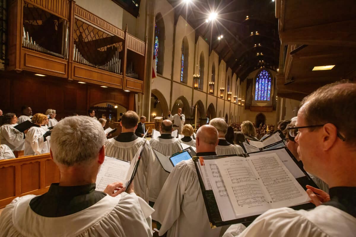 Sanctuary: Compline choir composed of staff singers and volunteers | Rehearsals Sundays, 6:45-7:50 p.m., plus one Monday monthly, 7 p.m.-9 p.m. | Sings at Compline service, Sundays at 8 p.m., and for special services and occasional concerts